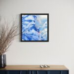 Oil and spraypaint on 350g/m2 stretched canvas in a shadowgap frame.
