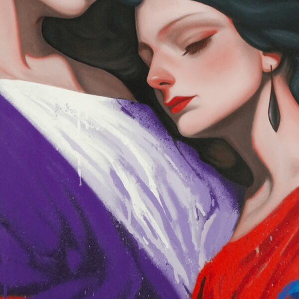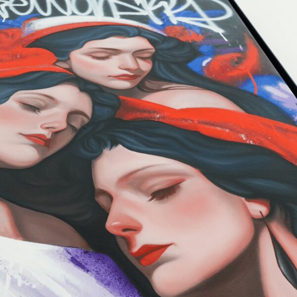 The motive is a reimagination of Raffaello Santis painting of the three graces. The three women represent the stages of development of women. In greek mythology they are also known for bringing gifts to humanity like mirth, elegance and beauty.